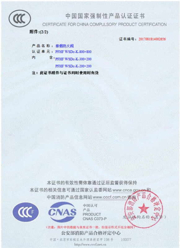 產(chǎn)品全通過國家消防檢測中心檢測,獲得CCC證書